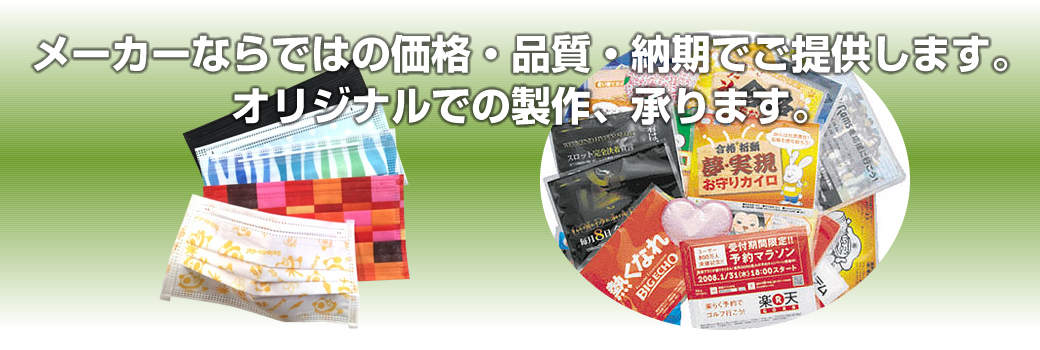 株式会社アサヒ企画(埼玉県さいたま市)は『オリジナルマスク・オリジナル印刷マスク・本体印刷マスク・不織布印刷マスク・名入れプリントマスク・別注印刷マスク、オリジナルカイロ・オリジナルデザインカイロ』の国内トップシェアメーカーです!!